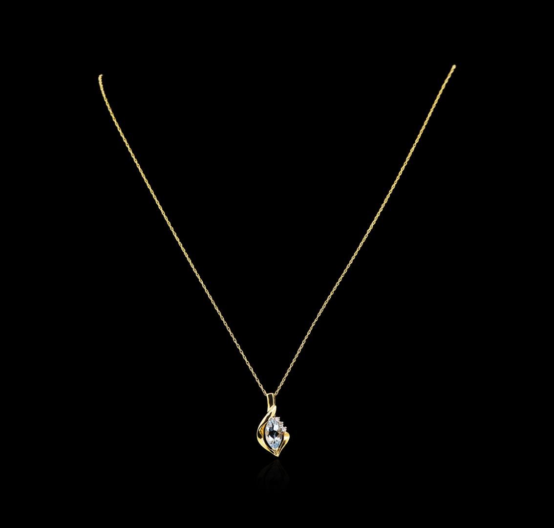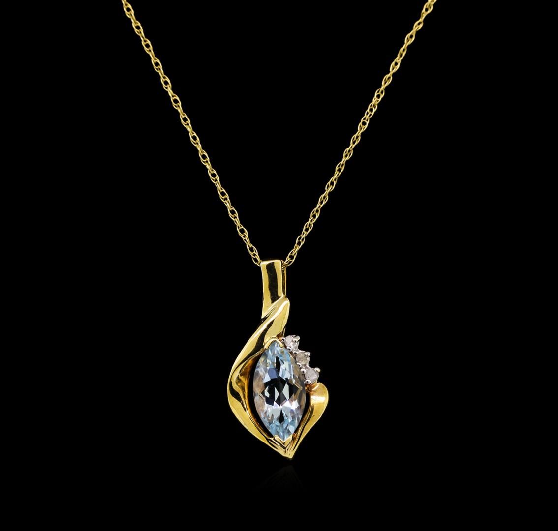 Aquamarine and Diamond Pendant With Chain - 10KT Yellow Gold. Total Weight: 1.9 grams.