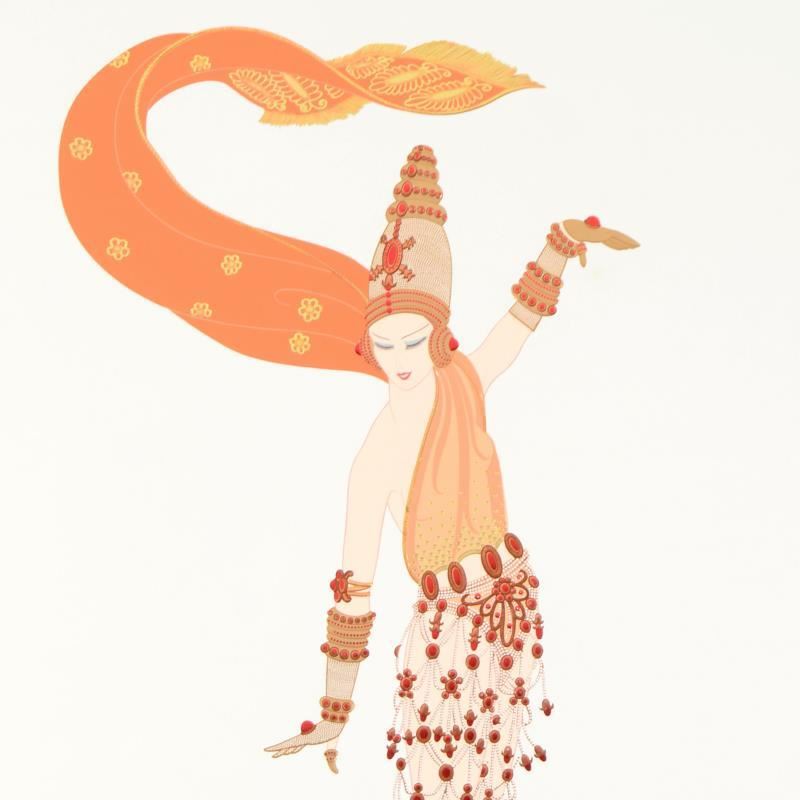 "Arabian Nights" is a hand signed limited edition serigraph on paper by Erte (1892-1990), numbered 231/300. Includes Certificate of Authenticity. Measures approx. 29.5" x 40.5" (border), 24.5" x 34.5" (image). Due to the age of this piece and the delicate nature of the paper it may have some slight imperfections.