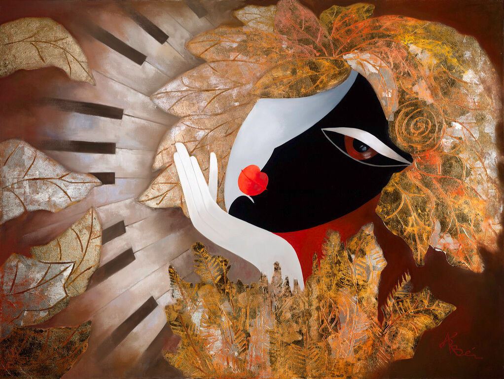 Originally created for Celebrity Cruise Lines, this is a 30x40" embellished giclee on canvas, with gold & silver foil enhancements sculpted on by Arbe in his own hand. COA included.