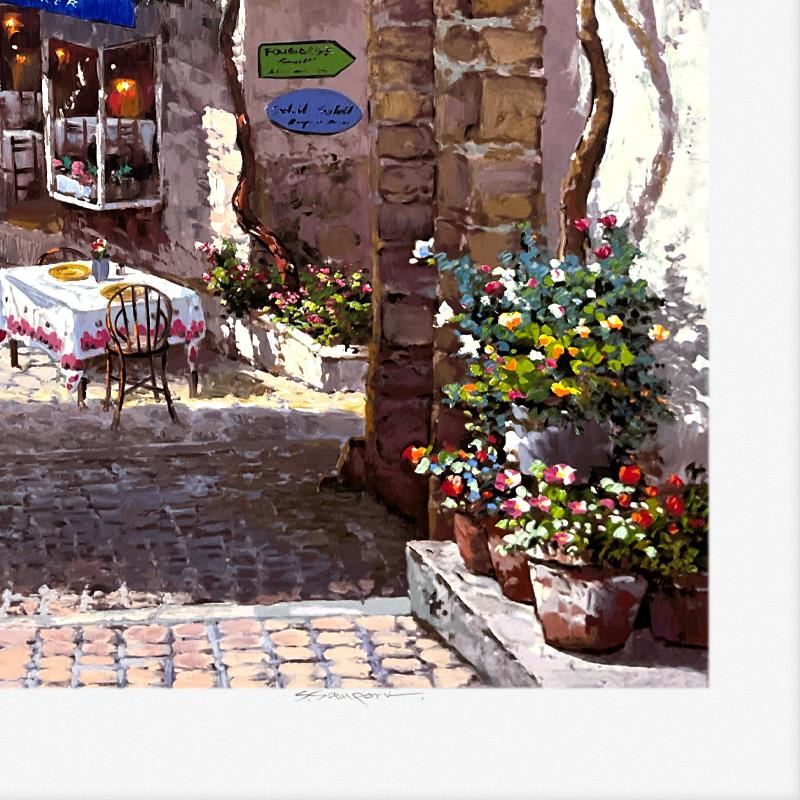 "Arches De Cagnes" is a limited edition printer's proof serigraph on paper by Sam Park, numbered and hand signed by the artist. Includes Letter of Authenticity. Measures approx. 42.5" x 56" (border), 38" x 52" (image). There is minor creases in the white border area that may be concealed when framed.