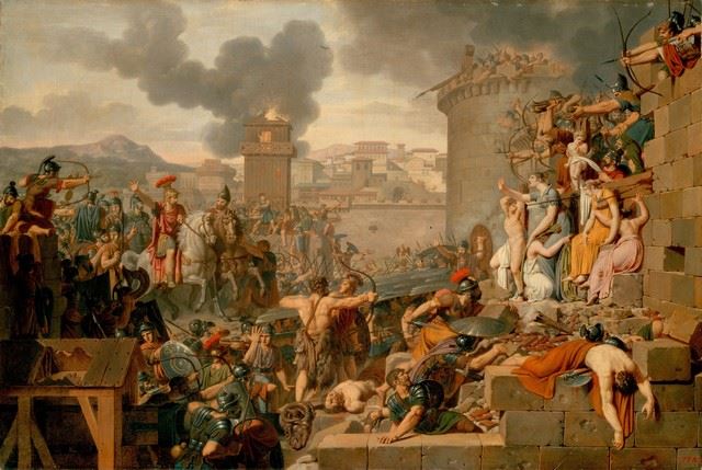 Artist: Armand-Charles Caraffe - Title: Metellus Raising the Siege - Medium: Fine Art Reproduction Giclee on Canvas - Image Size: Approximately 13.5 inches x 20 inches - Unframed on Unstretched Canvas - Biography: Caraffe was born in Paris in 1762. He was a pupil of Lagrenee and David. He visited Rome, and then travelled in Turkey, but returned to France at the outbreak of the Revolution becoming so active a member of the Jacobin Club that he was imprisoned from 1794 to 1797. In 1799 he exhibited 1799 a picture of Hope supporting Misfortune to the Grave, which was much praised, and in the following year one of Love, abandoned by Youth and the Graces, consoling himself on the bosom of Friendship, which was purchased by the wife of the First Consul. In 1802 he left France for an appointment at the Court of St. Petersburg, where he remained until 1812, and painted The Oath of the Horatii for Prince Yusupov. He eventually returned to Paris, where he died on 18 August 1822.
