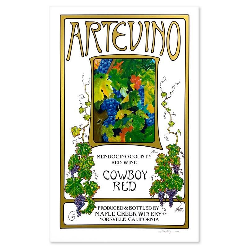 "Artevino" is a limited edition serigraph on paper by Tom Rodrigues, numbered and hand signed by the artist. Measures approx. 21" x 33" (border), 17" x 28" (image).