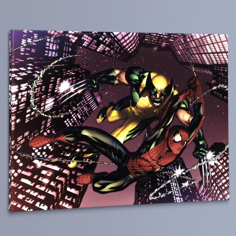 A piece of comic book history, this limited edition, from original art by Adam Kubert, depicts the heroic Spider-Man and Wolverine. Adam Kubert began his professional comics career at age 12 as a letterer. He went on to attend the Rochester Institute of Technology, graduating with a degree in medical illustration. He subsequently attended The Kubert School in Dover, New Jersey. He is known for his work on such titles as: Ultimate X-Men, Ultimate Fantastic Four, Incredible Hulk, Wolverine. "Astonishing Spider-Man & Wolverine #1" is a limited edition numbered giclee on canvas by Adam Kubert presented by Marvel Comics. This piece comes gallery wrapped. Includes Certificate of Authenticity! Measures approx. 24" x 18" (image).