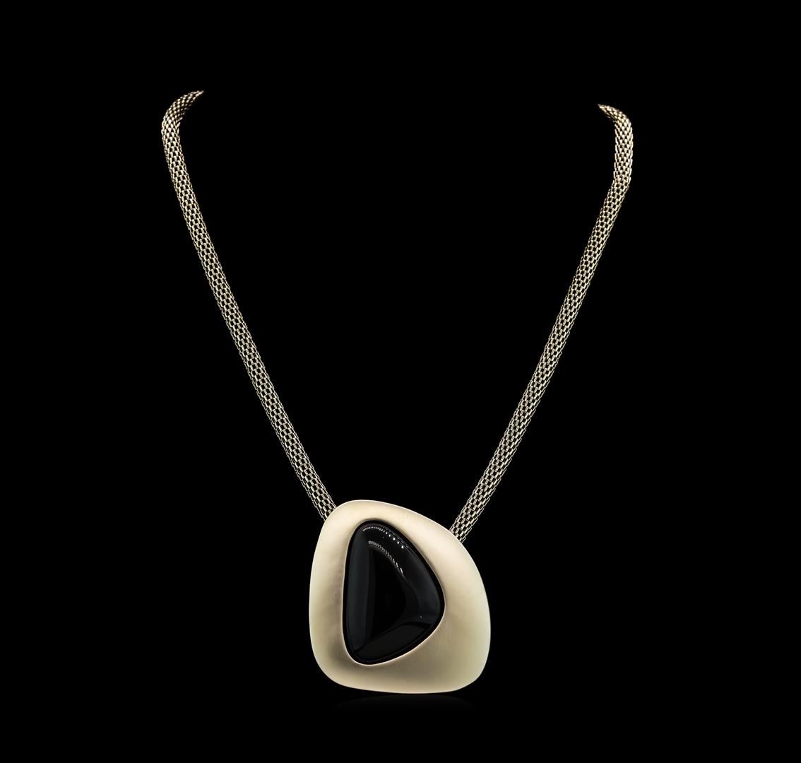 High end designer jewelry. Asymmetry Stone Pendant Short Neck - Gold Plated. Gold Plated/ Black2 Inches Ext.. Gold/ Black. 16inches.