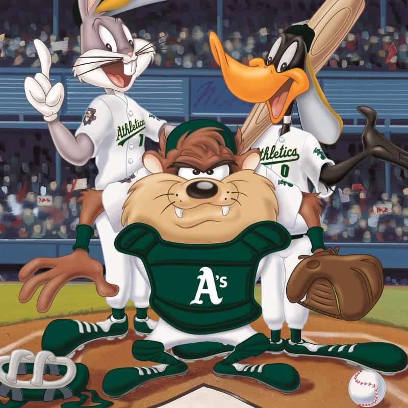 "At the Plate (Athletics)" is a limited edition giclee on paper from Warner Bros. featuring iconic Looney Tunes characters in Oakland Athletics MLB uniforms. It comes numbered, with hologram seal, and a Certificate of Authenticity! Measures approx. 16 x 20" (with border), 12" x 16" (image).