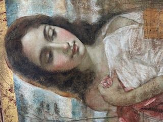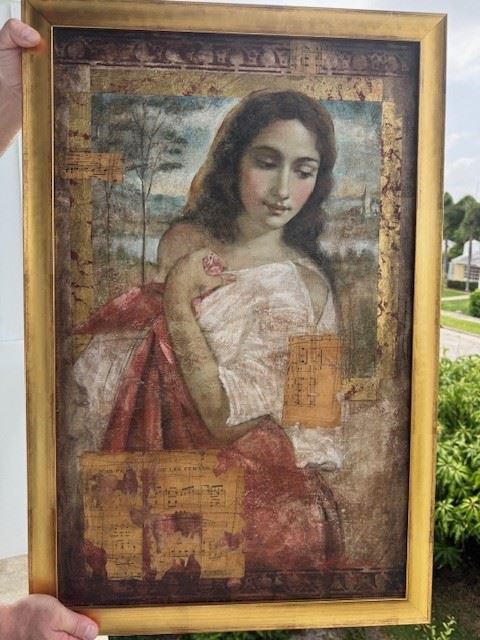 One of Richard Franklin's signature images , Atala is an original oil & mixed-media masterpiece at 29x19" , framed to 38x28"