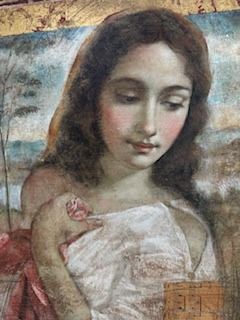One of Richard Franklin's signature images , Atala is an original oil & mixed-media masterpiece at 29x19" , framed to 38x28"