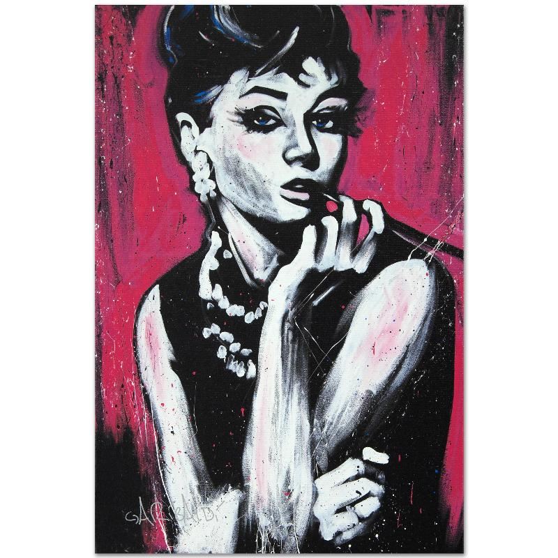 Combining his passions for music and art, David Garibaldi creates stunning visual poetry. "Audrey Hepburn (Fabulous)" is a limited edition giclee on stretched canvas, numbered and bearing the artist's authorized signature. This piece comes gallery wrapped. Includes Certificate of Authenticity! Measures approx. 30 x 40" (image).