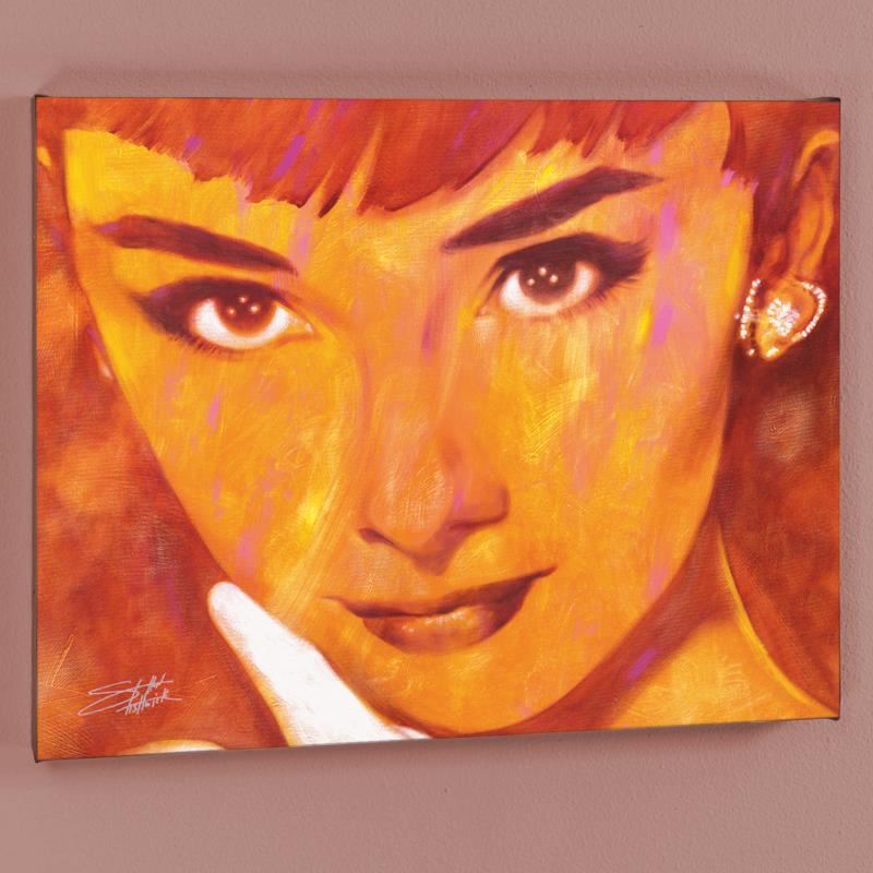 With bright colors and expressive lines, Stephen Fishwick puts a unique spin on pop culture portraits. "Audrey Too" is a limited edition giclee on stretched canvas, numbered and bears the artist's authorized signature. This piece comes gallery wrapped! Includes Letter of Authenticity. Measures approx. 20" x 16" (image). This item requires special handling and may have a longer than usual turnaround.