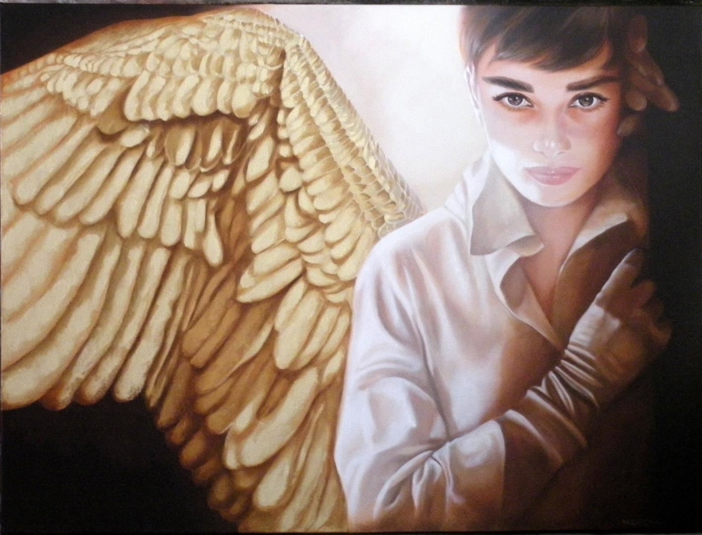 An original 30x40" oil painting of Audrey Hepburn by Margaret Korona on stretched canvas, signed by Artist ; with COA by Artist