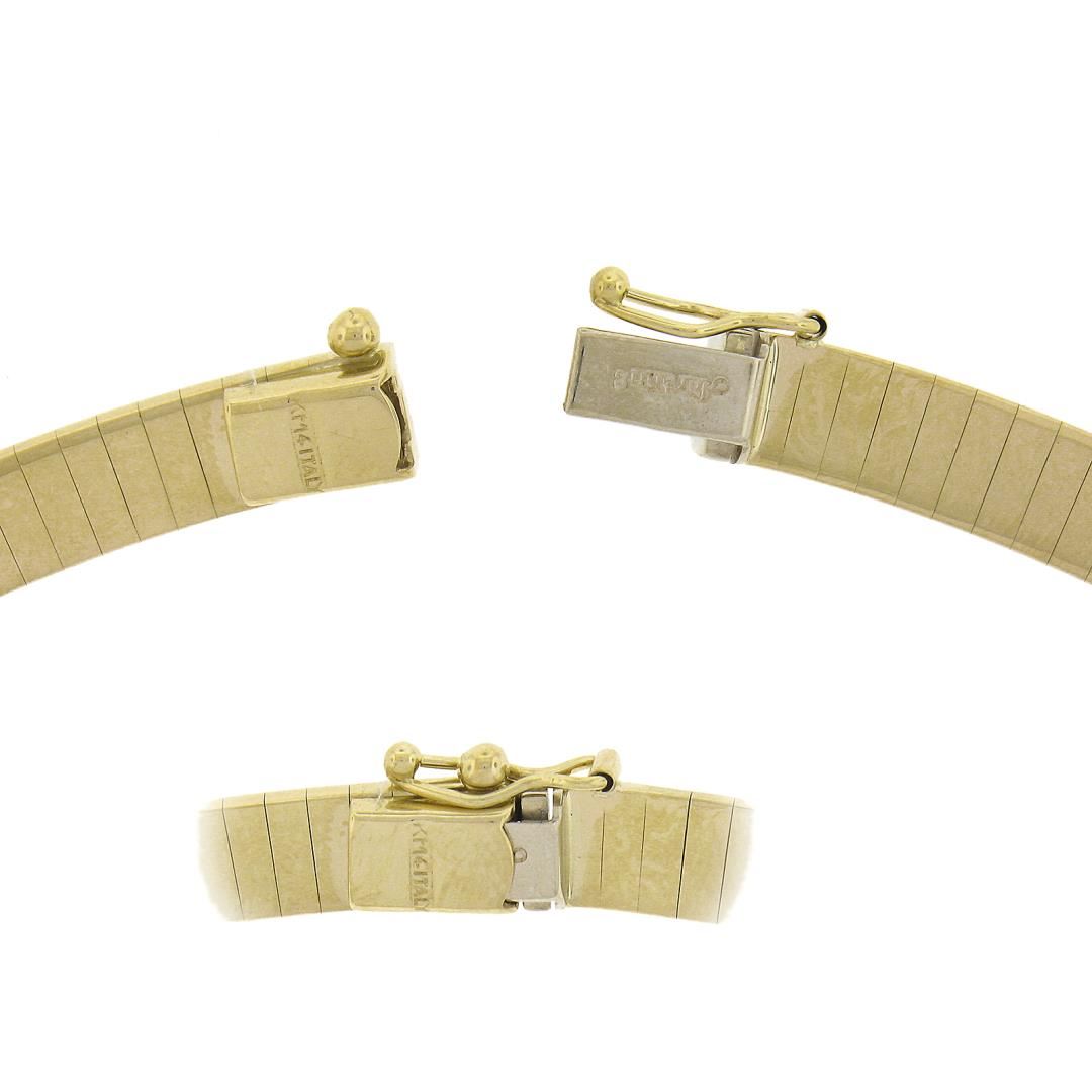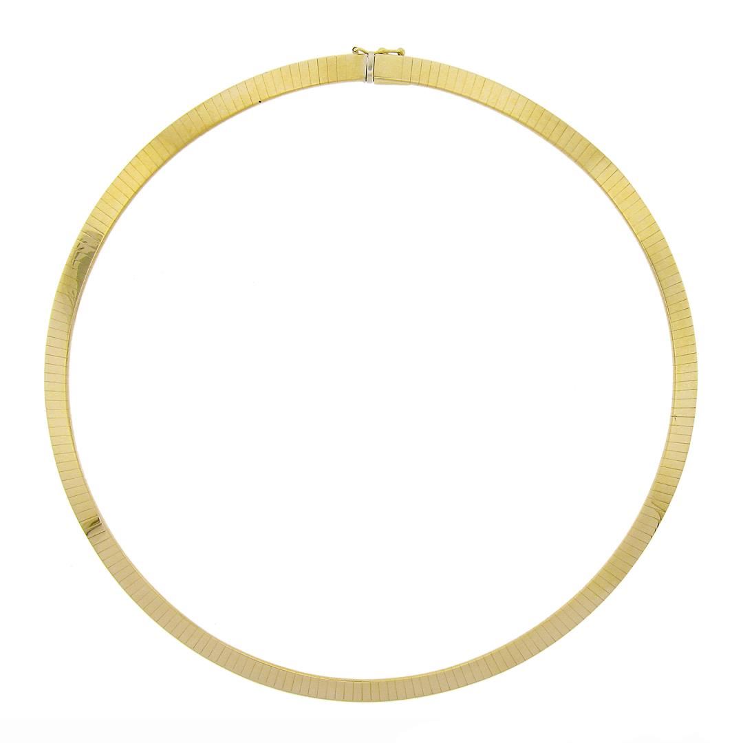 A solid 14k yellow gold omega link necklace by Aurafin. It weighs a total of 35.15 grams, measures 6mm wide, and measures 15.5 inches in length.