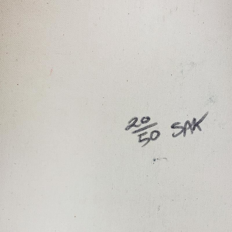 "Australia money state one " is limited edition hand pulled silkscreen unique mixed media on canvas by Andy Warhol protege Steve Kaufman (1960-2010). This piece is numbered and hand signed inverso and includes a letter of authenticity. As is common with Kaufman's works, this piece may have perceived minor flaws, but is in overall good condition. Measures approximately 17" x 30" before cropping.