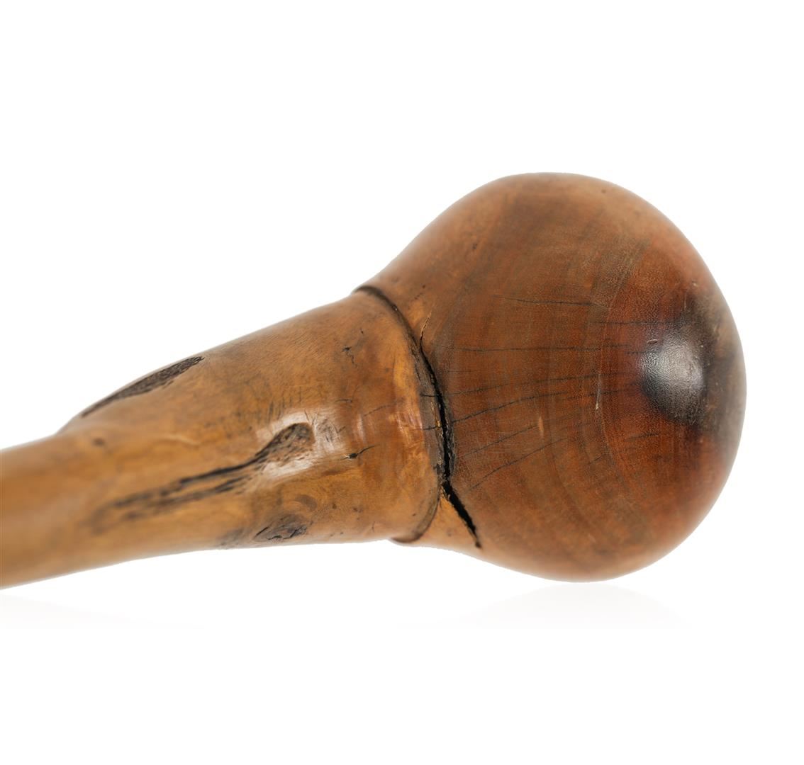 This wooden staff is an authentic Kenyan Maasai rungu. The rungu is a wooden throwing club, bearing special symbolism and significance is East African cultures. It is most commonly associated with Maasai morans. This rungu measures 19.5" long and has no damage.