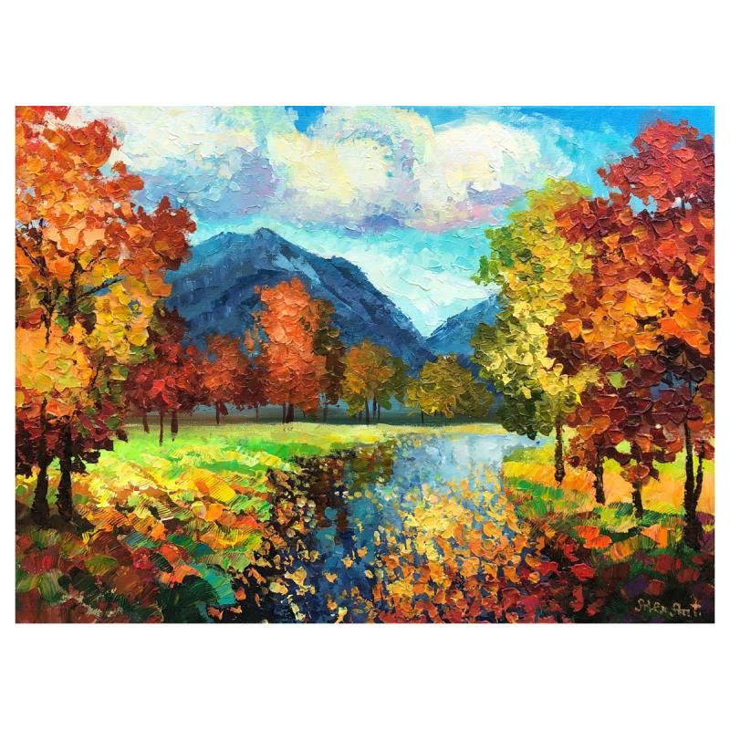 Autograph Of Autumn is an original oil painting on stretched canvas by Alexander Antanenka. Hand signed by the artist, the piece comes with a letter of authenticity. Measures approximately 18 x 24 (image). There may be scuffs on the edges and corners which would be concealed when framed.