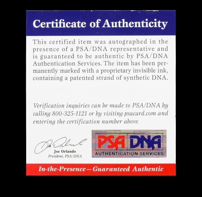 Regarding Memorabilia Items - All autographed memorabilia comes with a Certificate of Authenticity. SAA may have an interest in certain third-party authenticators and bidder hereby waives any potential conflicts therein related to SAA's relationship with such authenticators. SAA is not responsible for the opinions of any of the third-party authenticators. You should in no way rely exclusively on such third-party opinions without conducting your own due diligence prior to bidding. All Certificates of Authenticity may only be relied upon for one year from the date of sale of any item. SAA, and its consignors may be determined to be "Dealer(s)" within the meaning of California Civil Code Section 1739.7(a)(4) and as such make the following statement: SALE OF AUTOGRAPHED SPORTS MEMORABILIA: AS REQUIRED BY LAW, A DEALER WHO SELLS TO A CONSUMER ANY SPORTS MEMORABILIA DESCRIBED AS BEING AUOTOGRAPHED MUST PROVIDE A WRITTEN CERTIFICATE OF AUTHENTICITY AT THE TIME OF SALE. THIS DEALER MAY BE SURETY BONDED OR OTHERWISE INUSRED TO ENSURE THE AUTHENTICITY OF ANY COLLECTIBLE SOLD BY THIS DEALER.