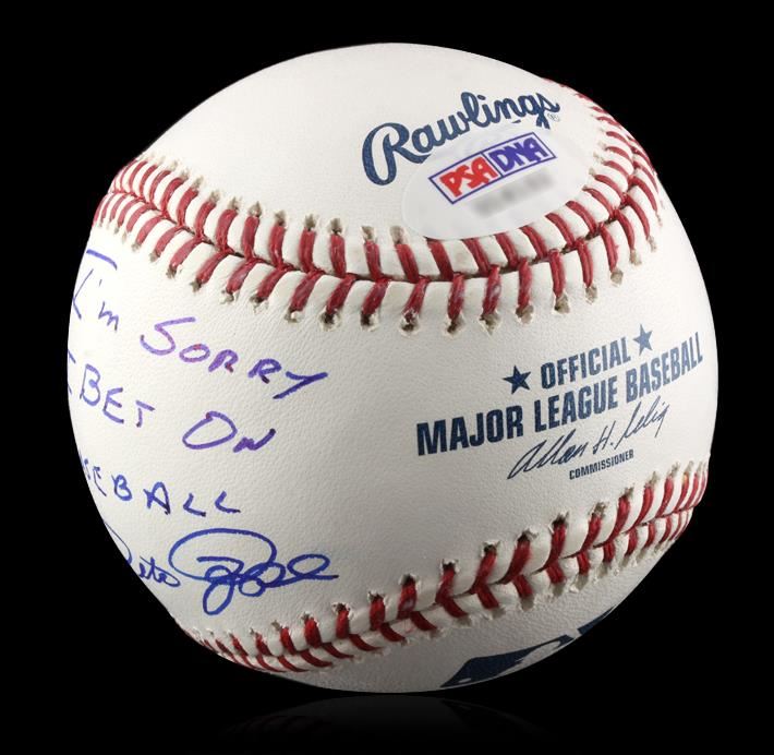 Autographed Pete Rose "I'm Sorry" Baseball PSA Certified. Signed Pete Rose baseball with I'm Sorry I bet on Baseball written on the ball. Pete Rose had 4256 hits in his 24 year career with the Reds, Phillies, and the Expos. Pete won 3 World Series Titles. He won in 1975 and 1976 with the Cincinnati Reds and he won his third in 1980 with the Philadelphia Phillies. PSA Certified.
