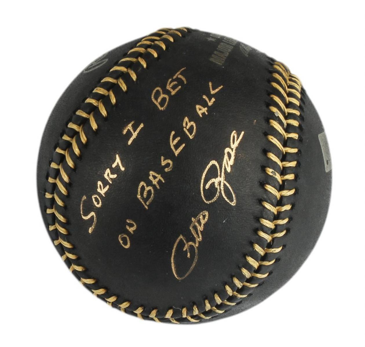Autographed Pete Rose "I'm Sorry" Baseball. Excellent Condition! Signed Pete Rose baseball with I'm Sorry I bet on Baseball written on the ball. Pete Rose had 4256 hits in his 24 year career with the Reds, Phillies, and the Expos. Pete won 3 World Series Titles. He won in 1975 and 1976 with the Cincinnati Reds and he won his third in 1980 with the Philadelphia Phillies. Comes with Certificate of Authenticity!
