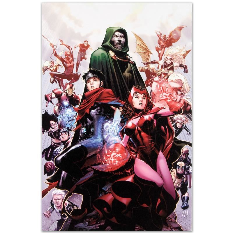 A piece of comic book history, this limited edition, from original art by Jim Cheung, depicts the Avengers. Jim Cheung was named as one of 2005's "Young Guns" by Marvel Editor-in-Chief, and has been described as a "future superstar penciller". "Avengers: The Children's Crusade #4" is a limited edition numbered giclee on stretched canvas by Jim Cheung presented by Marvel Comics. This piece comes gallery wrapped and ready to hang. Includes Certificate of Authenticity! Measures approx. 18" x 27" (image); 1.5" (depth).