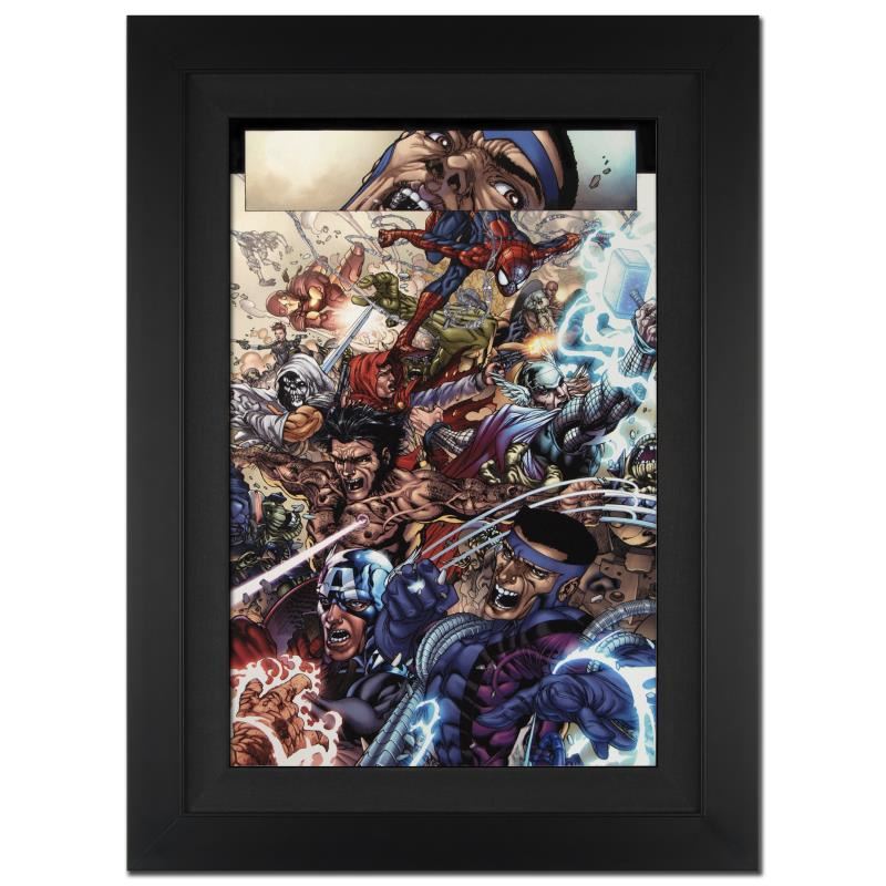 A piece of comic book history, this limited edition, from original art by Harvey Tolibao, depicts classic marvel characters such as Wolverine, The Crusader, and Spider-Man. Harvey Tolibao earned his first big shot with Marvel in 2007 by doing the Iron Man Annual. He has since worked on many Marvel franchises, including The Avengers and X-Men. "The Mighty Avengers #7" is an extremely limited edition giclee on canvas by Harvey Tolibao presented by Marvel Comics, hand signed by the great Stan Lee and numbered out of only 4! This piece is custom framed and ready to hang. Includes Certificate of Authenticity! Measures approx. 29" x 40" (with frame), 22" x 33" (image).