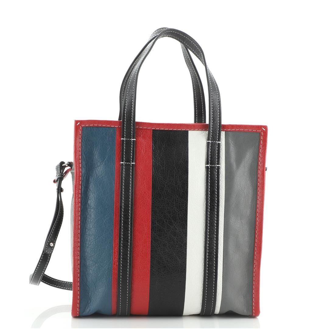 Balenciaga Bazar Convertible Tote Striped Leather Small White, Yellow