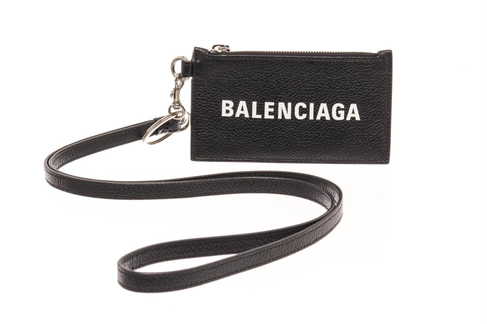 Balenciaga Black Calfskin Leather Logo Strap Cardholder. All available information is listed in the description and shown in the photos. Balenciaga Black Calfskin Leather Logo Strap Cardholder with calfskin leather, it a zip closure to ensure the contents are safe, while a leather strap Cardholder Width: 13cm, Height: 7cm, Depth: 1cm, / 5.11" x 2.75" x 0.39" Inches