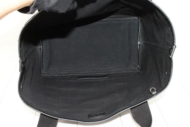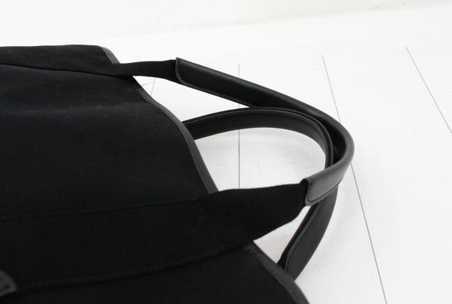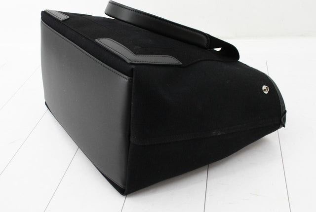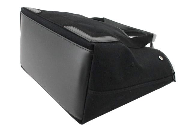 One Balenciaga Black Canvas Navy Cabas Small Tote Bag. Item is sold AS-IS. All available information is listed in the description and shown in the photo. Black canvas and black Calfskin leather Balenciaga Navy Cabas small tote bag with the Balenciaga signature on the front, including ??Paris??. It comes with an internal pouch, silver-tone hardware and there is a large compartment to store everything you need. The bag opens and closes with press studs, carry it with two handles. Length 29cm Width 17.5cm Height 23.5cm, Handles Drop: 14cm