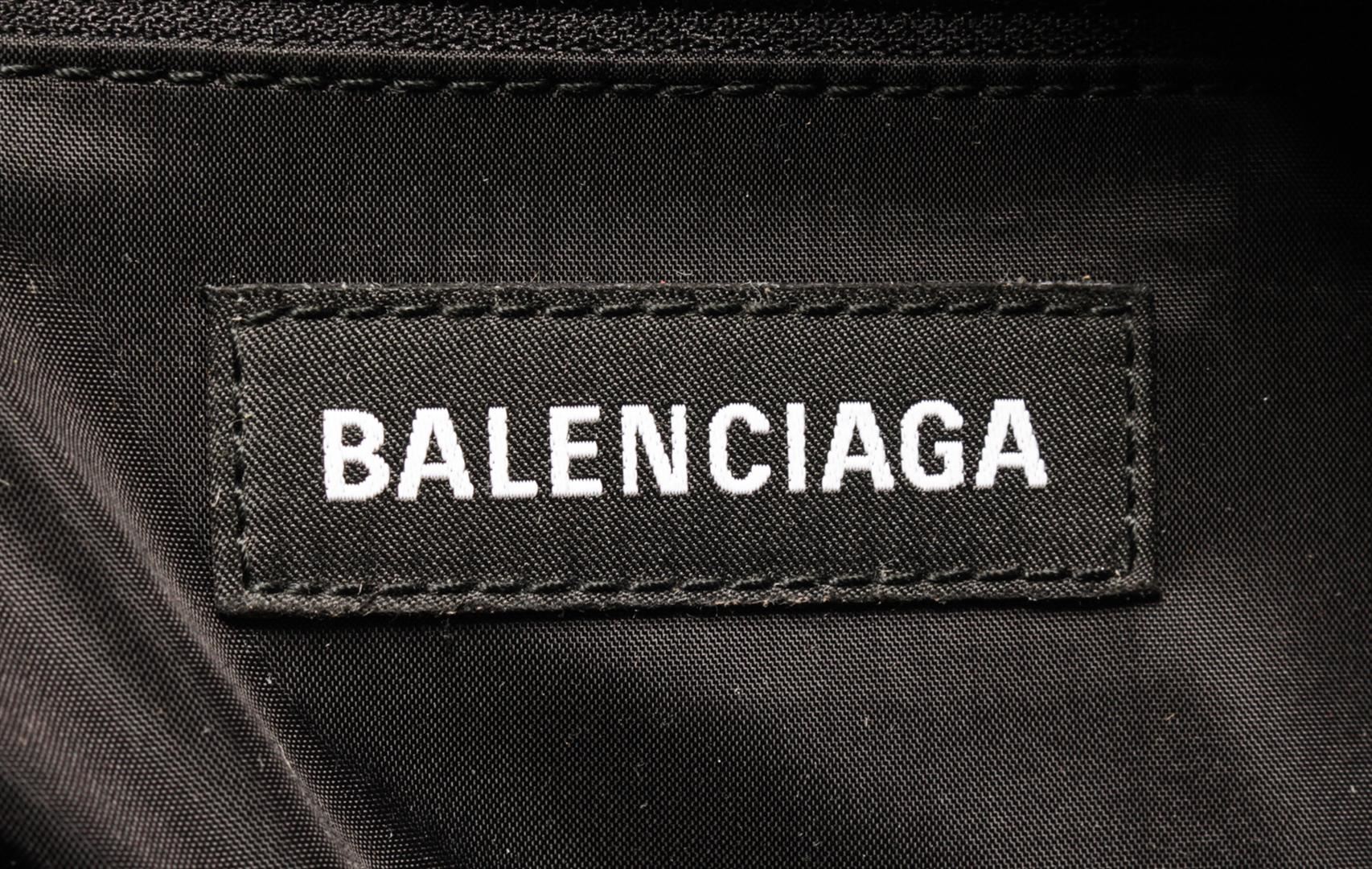 One Balenciaga Black Everyday Logo Backpack. Item is sold AS-IS. All available information is listed in the description and shown in the photo. Balenciaga Black Everyday Logo Backpack with top handle, two back straps, exterior zipper pocket, one interior slip pocket, zipper closure, nylon lining.