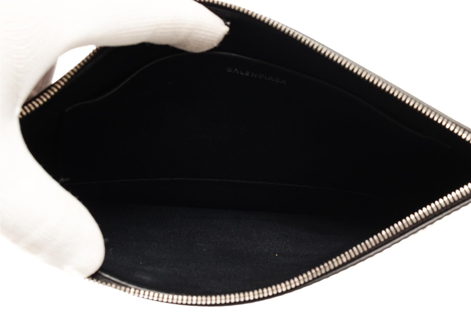 One Balenciaga Black Leather Everyday Script Logo Medium Pouch. Item is sold AS-IS. All available information is listed in the description and shown in the photo. Balenciaga Black Leather Everyday Script Logo Medium Pouch with silver-tone hardware, black leather lining, a leather slip pocket, and zip closure at the top. .