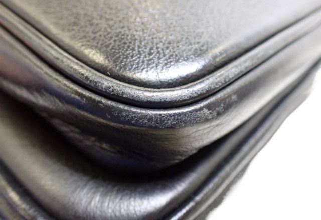 One Balenciaga Black Leather Logo-Print Messenger Shoulder Bag. Item is sold AS-IS. All available information is listed in the description and shown in the photo. Black Leather