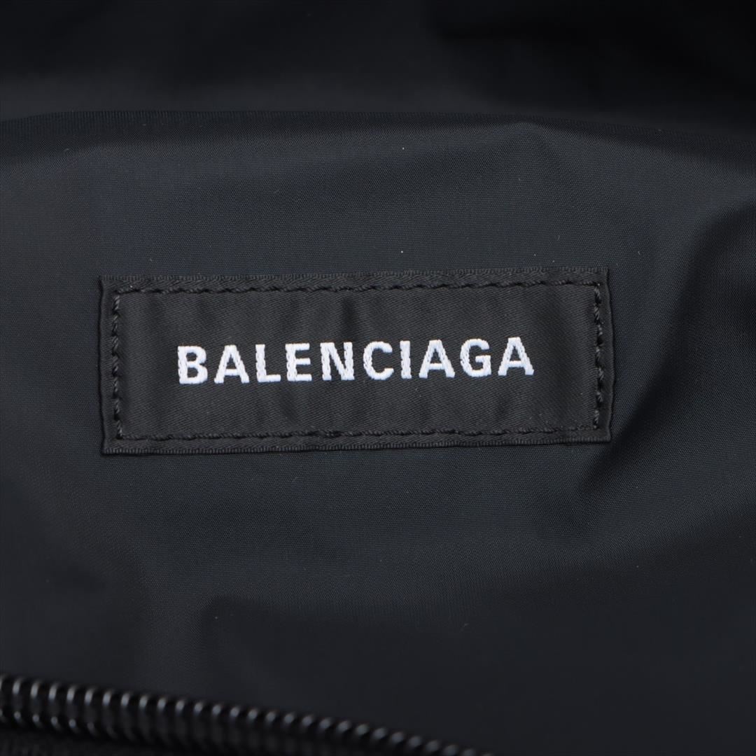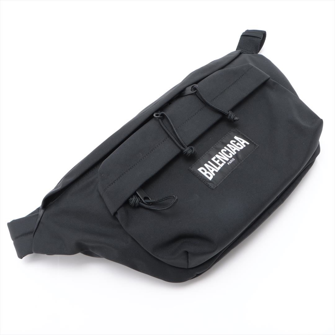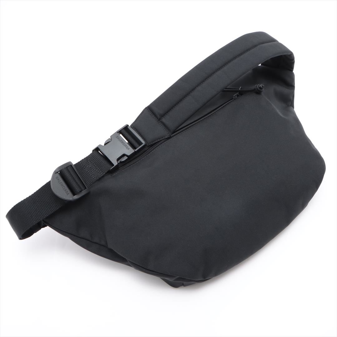 This Oversized waist bag from Balenciaga features black nylon body, black hardware, an adjustable black canvas waist strap with buckle fastening, a front zip fastening, a front zip pocket, black nylon lining and an embroidered Balenciaga patch logo. W