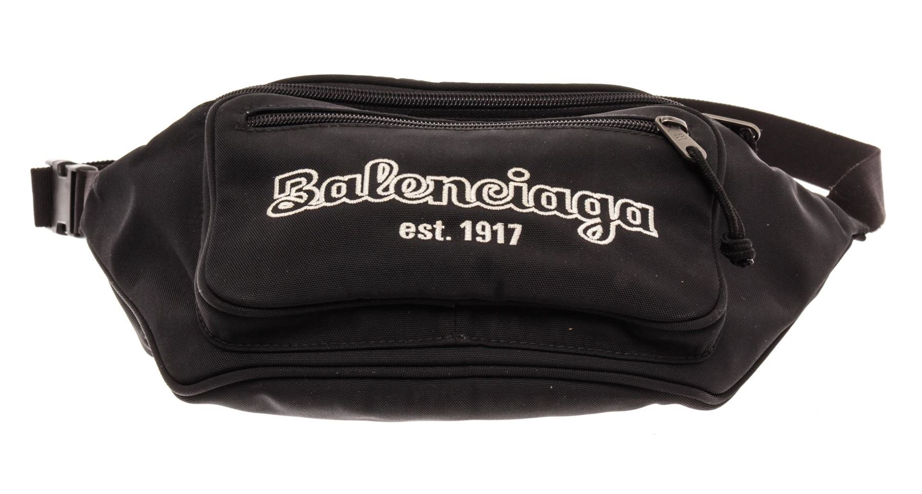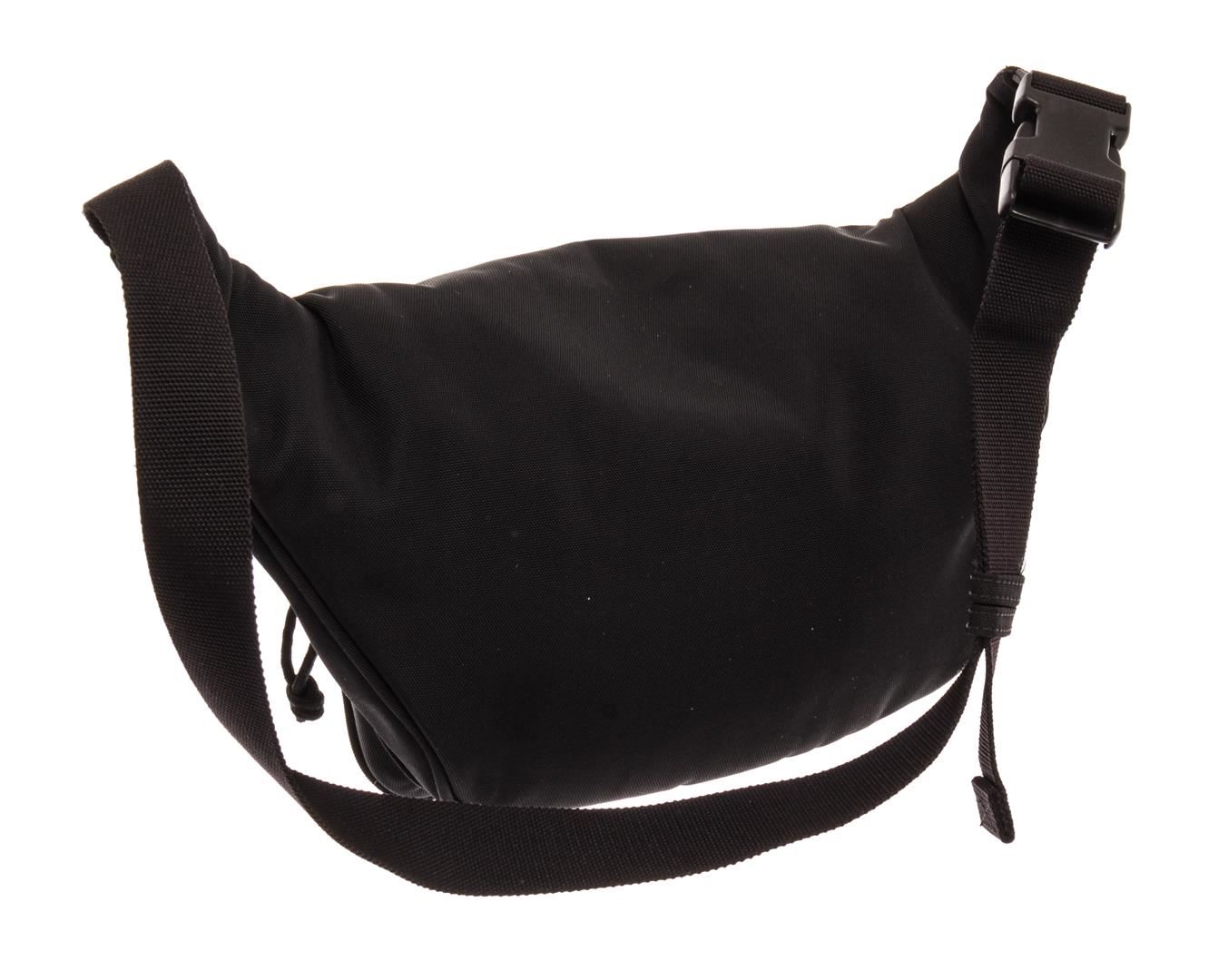 Balenciaga Black Nylon Polyester Waist Bag. All available information is listed in the description and shown in the photos. Balenciaga Black Nylon Polyester Waist Bag with a main zip compartment and handy pocket at the front, while an adjustable strap can be fastened around the waist or over your shoulder for a '90s feel. Height: 6.29" Width: 16.9" Depth: 3.14" / H16cm x W43cm x D8cm