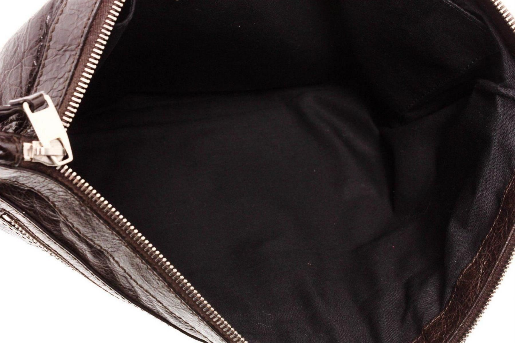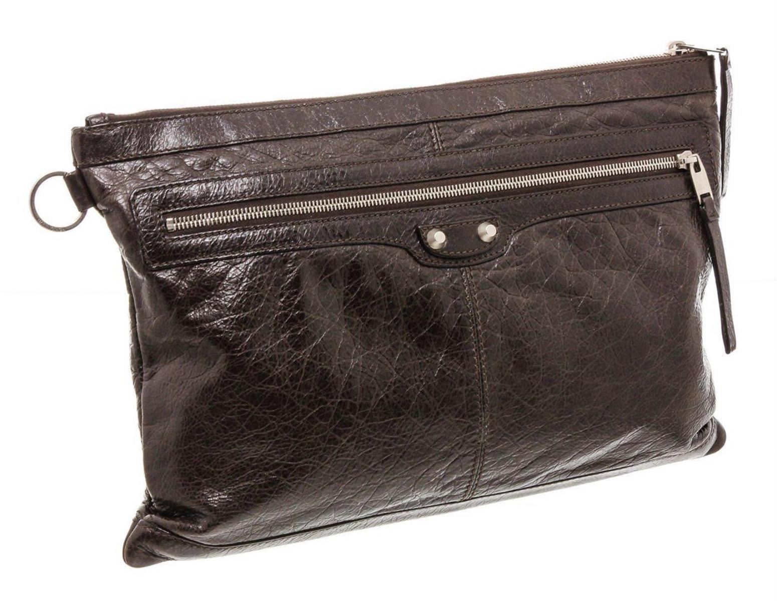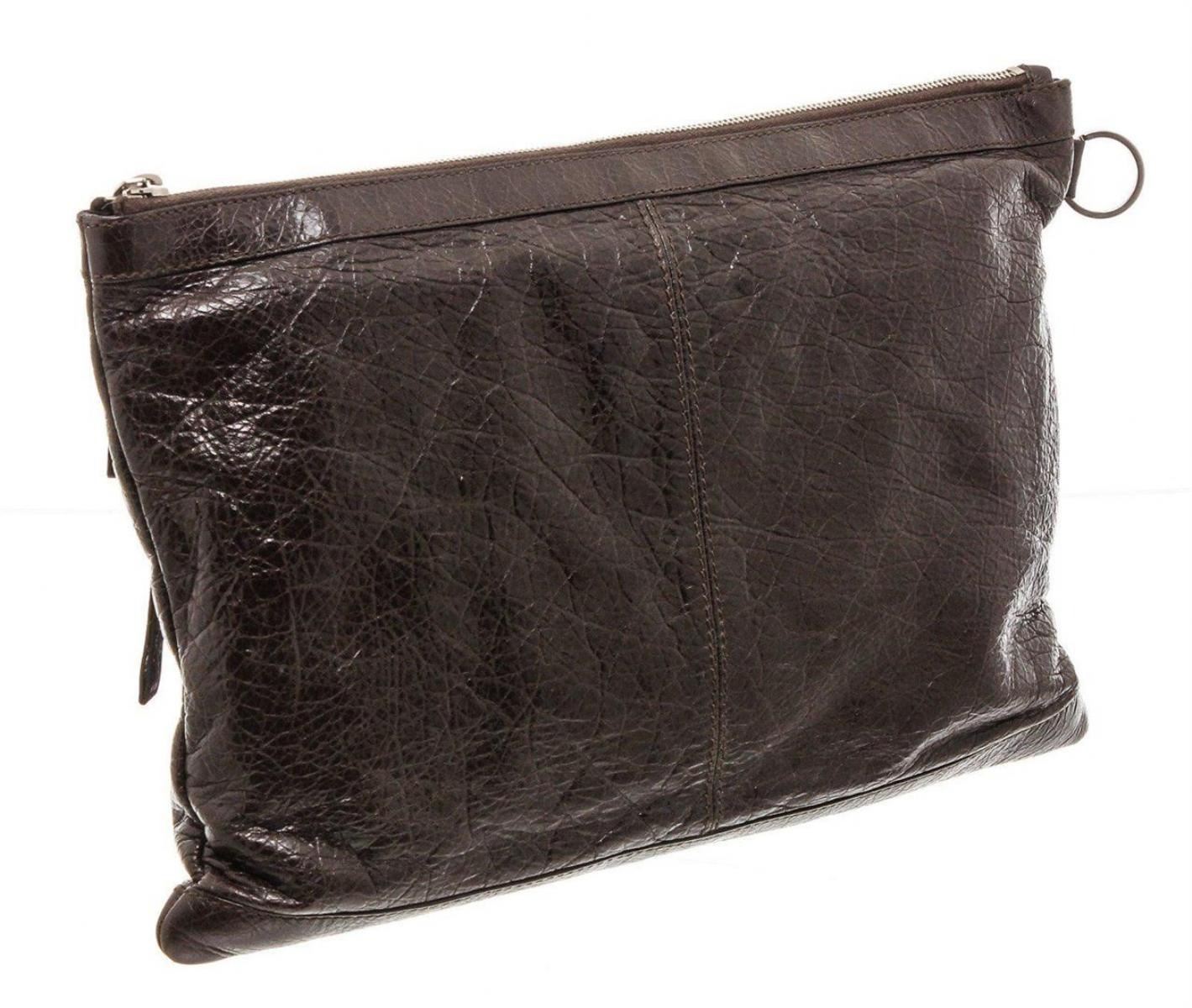 Brown Agneau leather Balenciaga Classic Clip L clutch with silver-tone hardware, single zip pocket at front face, black canvas lining and zip closure at top. Measurements: Length: 12.75 in / 32 cm Width: 0.5 in / 1 cm 9 in / 23 cmCONDITION: Pre-Owned Good overall, please see photographs for detail.