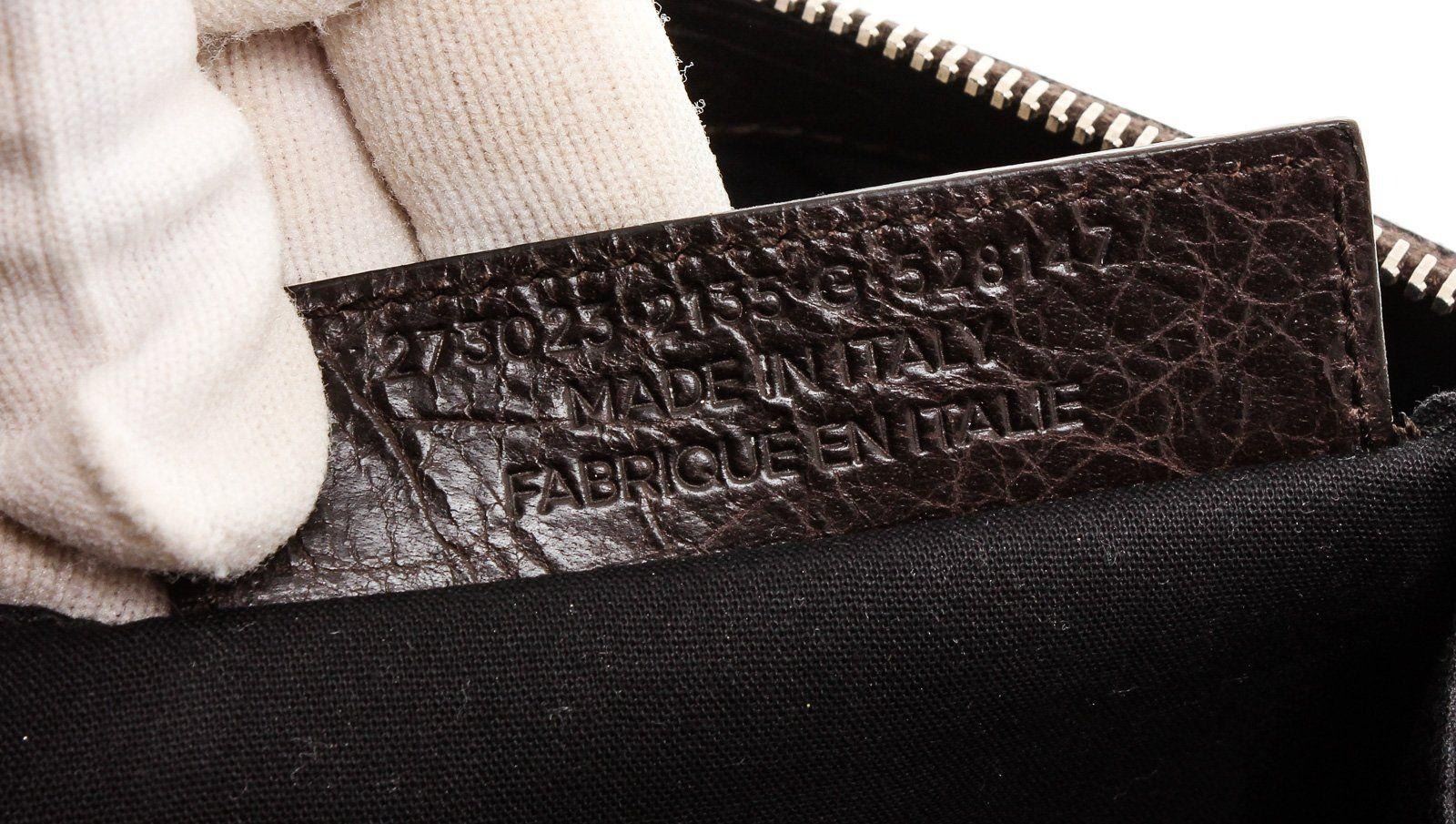 Brown Agneau leather Balenciaga Classic Clip L clutch with silver-tone hardware, single zip pocket at front face, black canvas lining and zip closure at top. Measurements: Length: 12.75 in / 32 cm Width: 0.5 in / 1 cm 9 in / 23 cmCONDITION: Pre-Owned Good overall, please see photographs for detail.