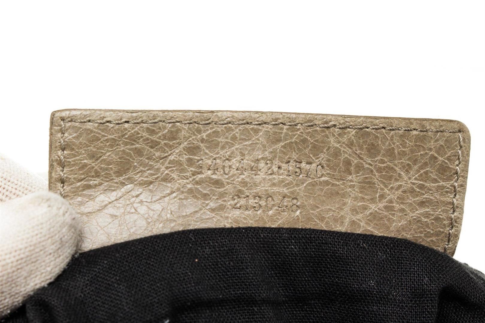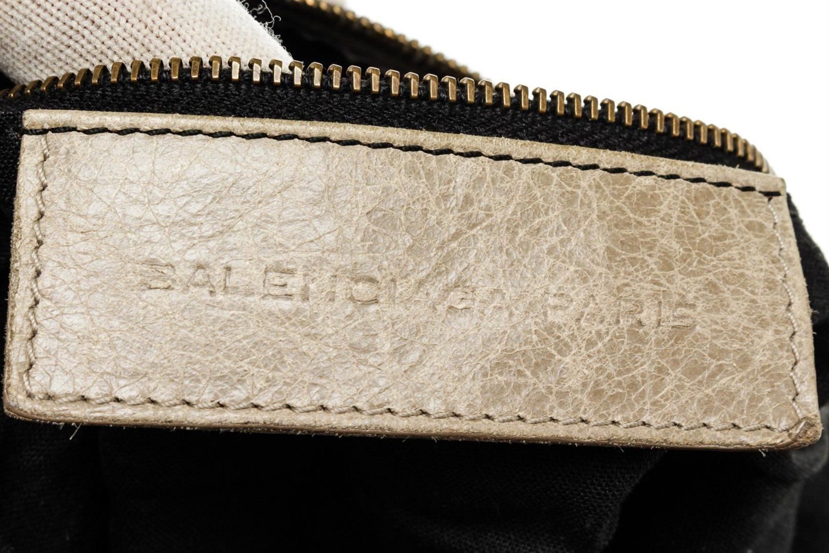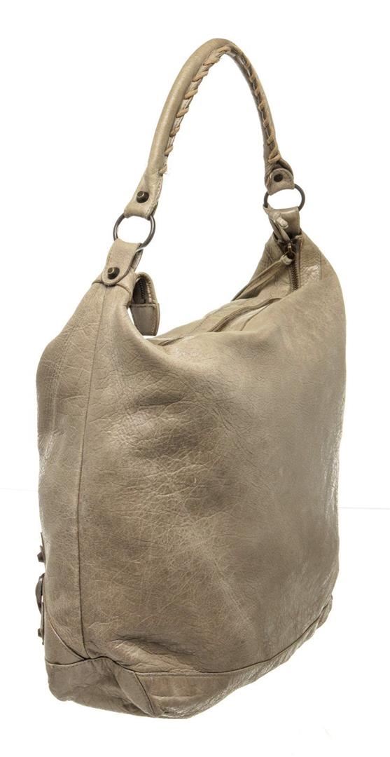 Balenciaga Brown Leather Large Classic Day Hobo Bag with gold-tone hardware, trim leather, exterior zip pocket, interior zip pocket, shoulder strap and zipper closure.