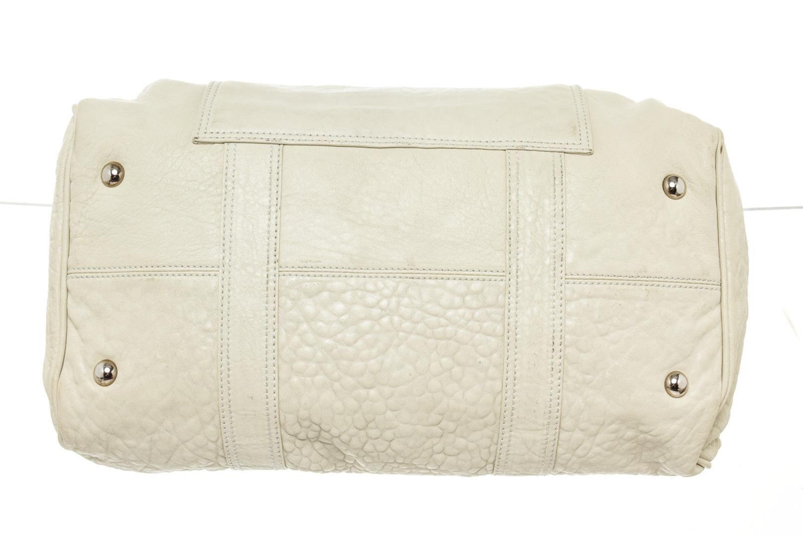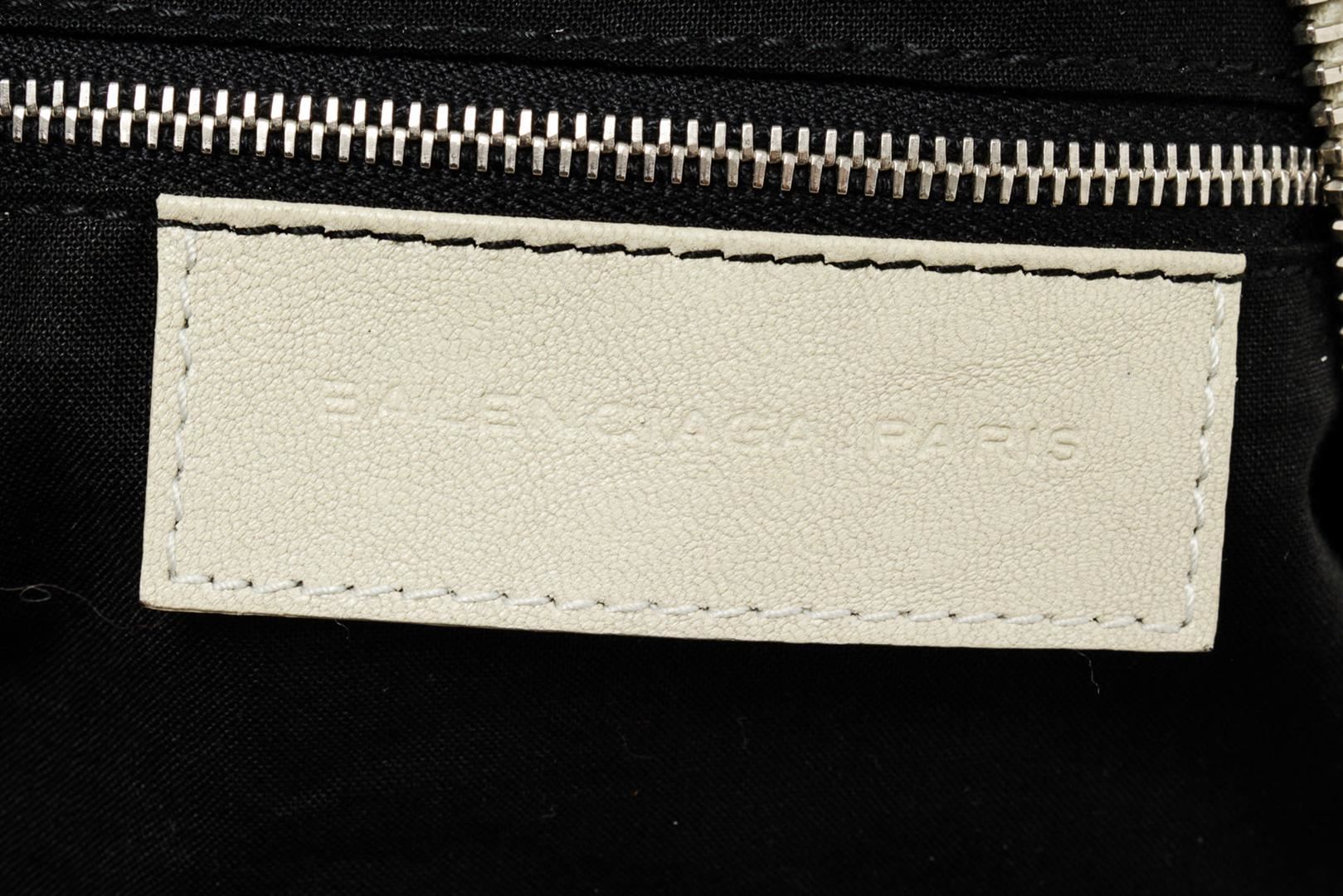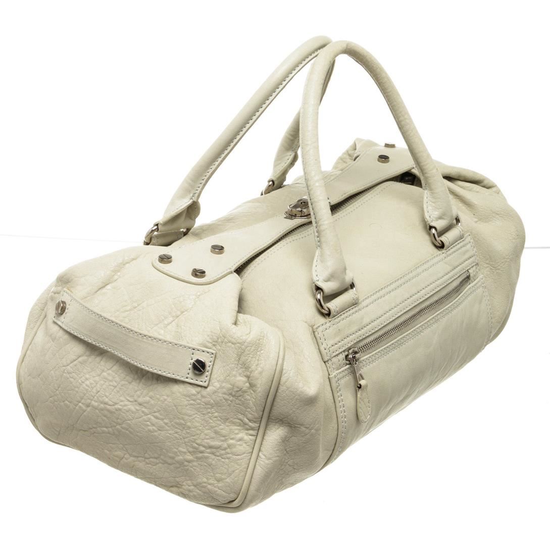 One Balenciaga Cream Leather Whistle Satchel Bag. Item is sold AS-IS. All available information is listed in the description and shown in the photo. Balenciaga Cream Leather Whistle Satchel Bag with leather, gold-tone hardware, trim leather, exterior zip pocket, interior slip pocket, dual top handle and zipper closure.
