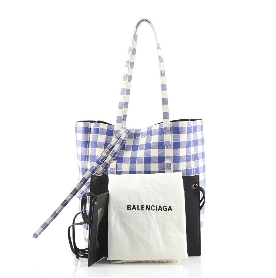 Balenciaga Everyday Tote Bag Printed Leather Small Metallic, Silver Condition Details: Wear on base corners, strap and handles, creasing on exterior and interior base. Small stain on front, slight cracking on opening and strap base wax edges, scratches on hardware. Height ", Width ", Depth ", Strap Drop 19-22