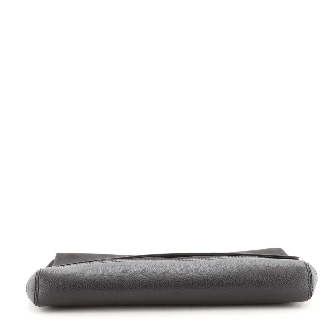 One Balenciaga Flap Clutch Canvas with Leather Black. Item is sold AS-IS. All available information is listed in the description and shown in the photo. Balenciaga Flap Clutch Canvas with Leather Black Canvas Leather Condition Details: Minor discoloration and wear on exterior and in interior, slight creasing underneath flap, scratches on hardware. Height 9", Width 13", Depth 4.4", Strap Drop None