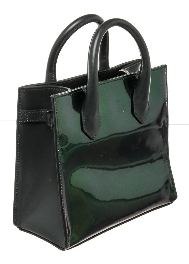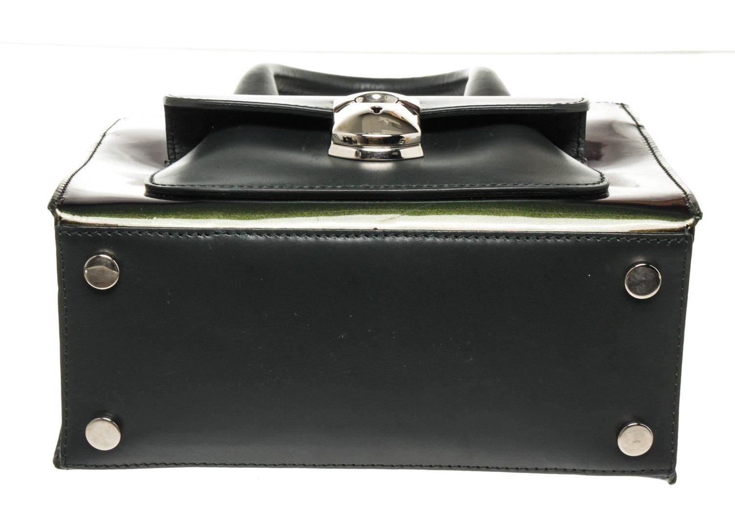 Balenciaga Green Leather Padlock All Afternoon Tote Bag with leather, gold-tone hardware, trim leather, exterior slip pocket, interior zip pocket, dua top handle and flap closure.