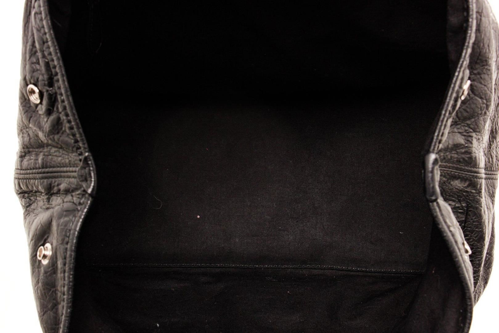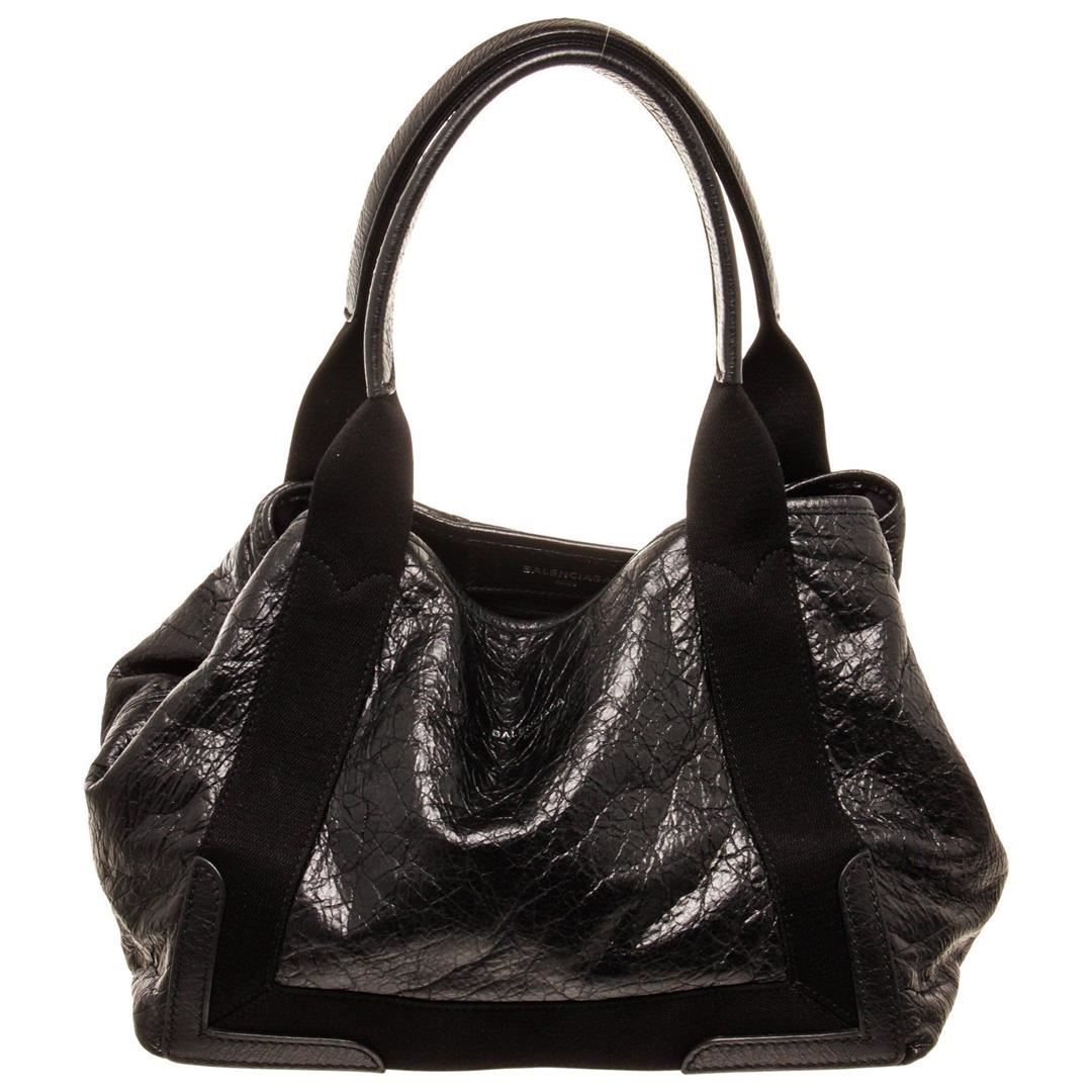 Balenciaga Navy Cabas Leather Hobo Bag with cabas, gold-tone hardware, trim leather, exterior zip pocket, top handle, shoulder strap and zipper closure.