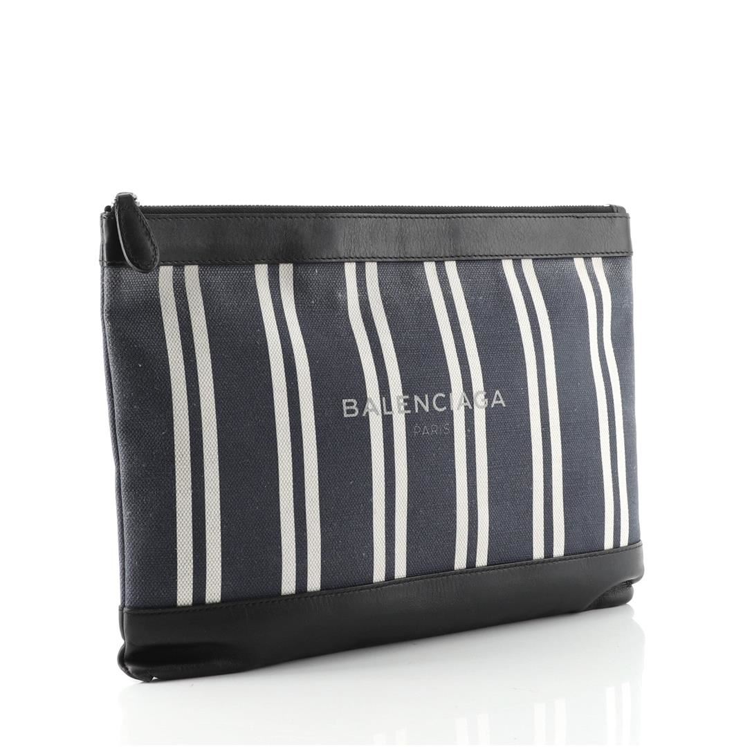 Balenciaga Navy Zip Pouch Striped Canvas and Leather Large Black Blue Beige Striped Leather