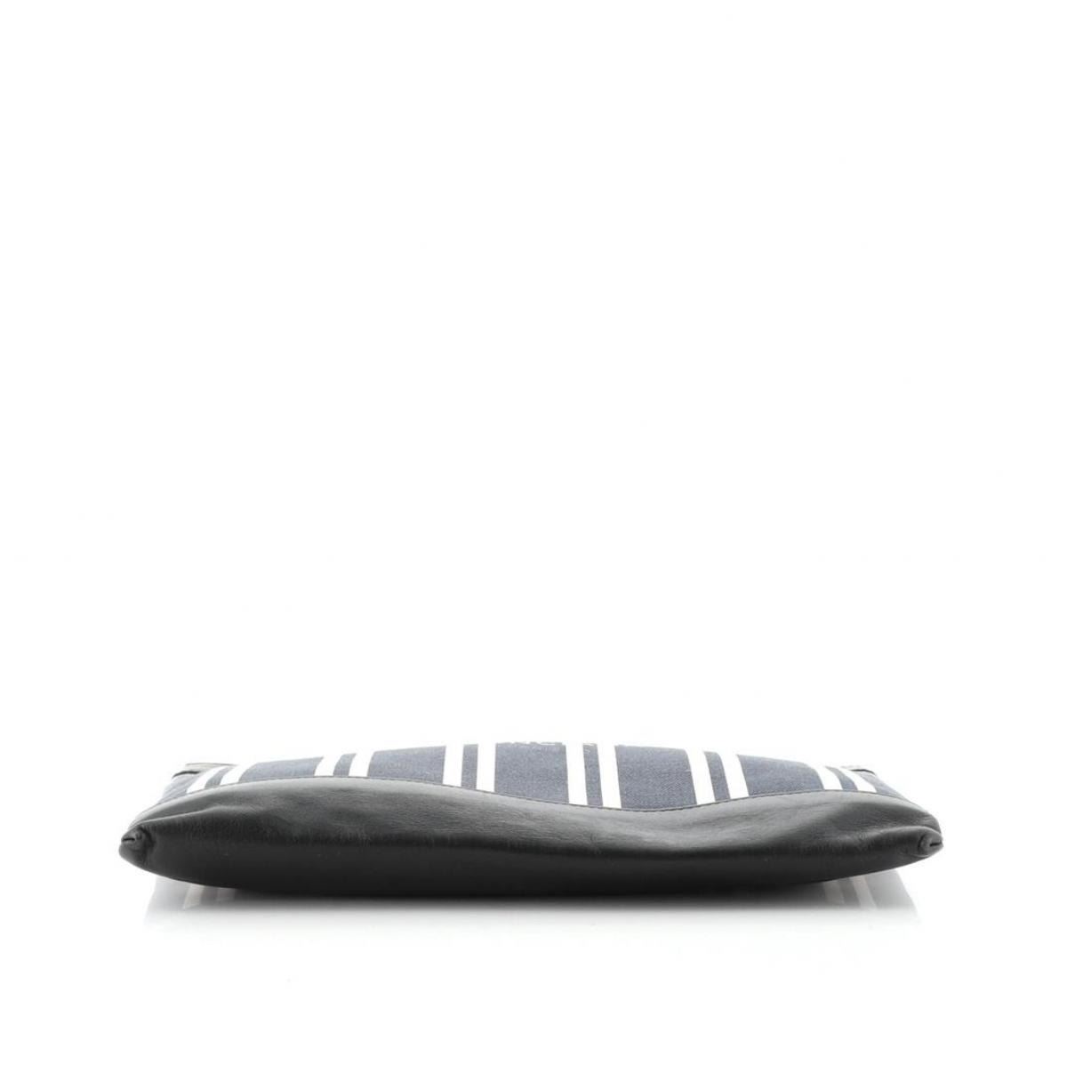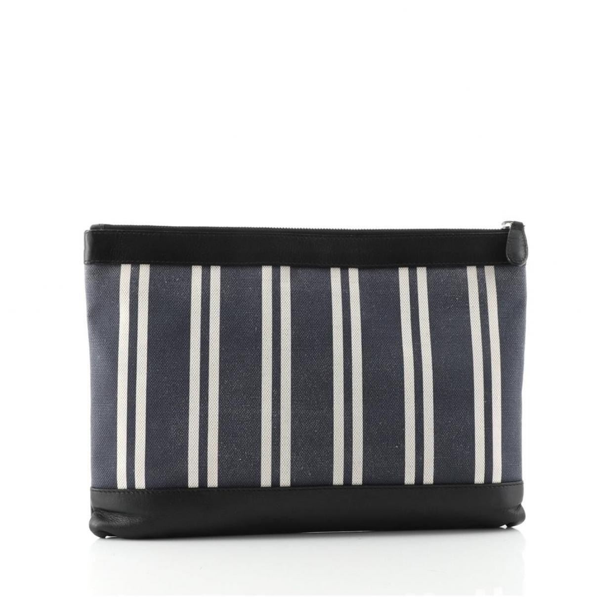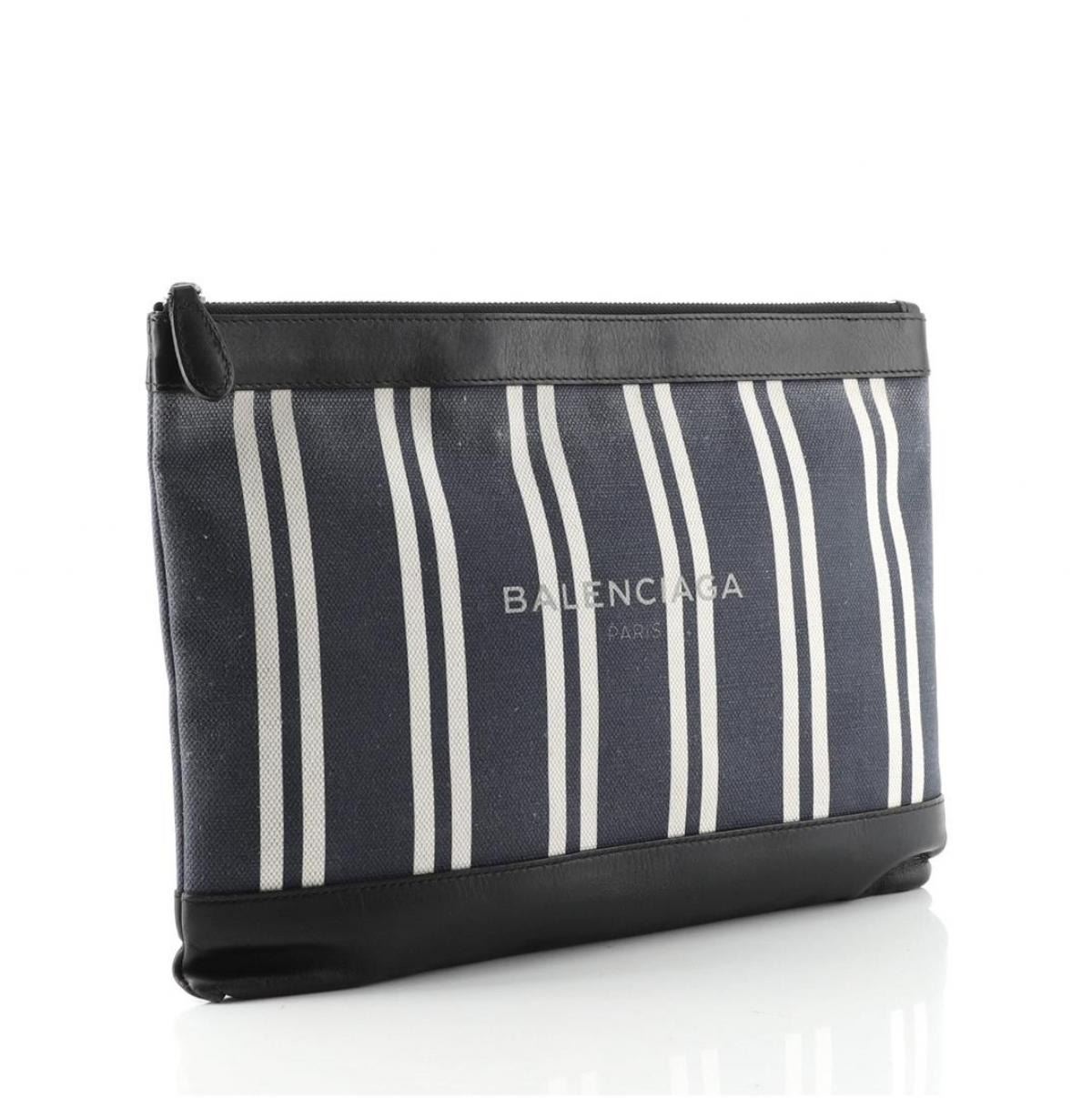 Balenciaga Navy Zip Pouch Striped Canvas and Leather Large Black Blue Beige Striped Leather