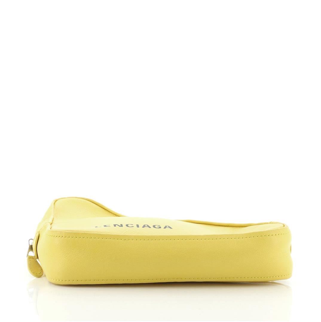 One Balenciaga Triangle Pouch Leather Medium Yellow. Item is sold AS-IS. All available information is listed in the description and shown in the photo. Balenciaga Triangle Pouch Leather Medium Black Condition Details: Minor creasing, scuffs and wear on exterior, scratches on hardware. Height 8", Width 8", Depth 2", Strap Drop None