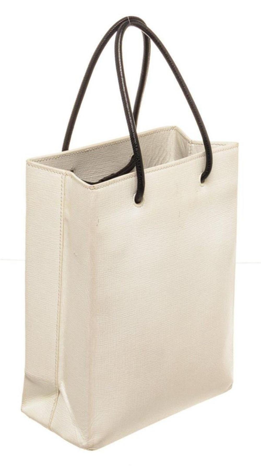 Balenciaga White Teiga Leather Shopping Bag with silver tone hardware.