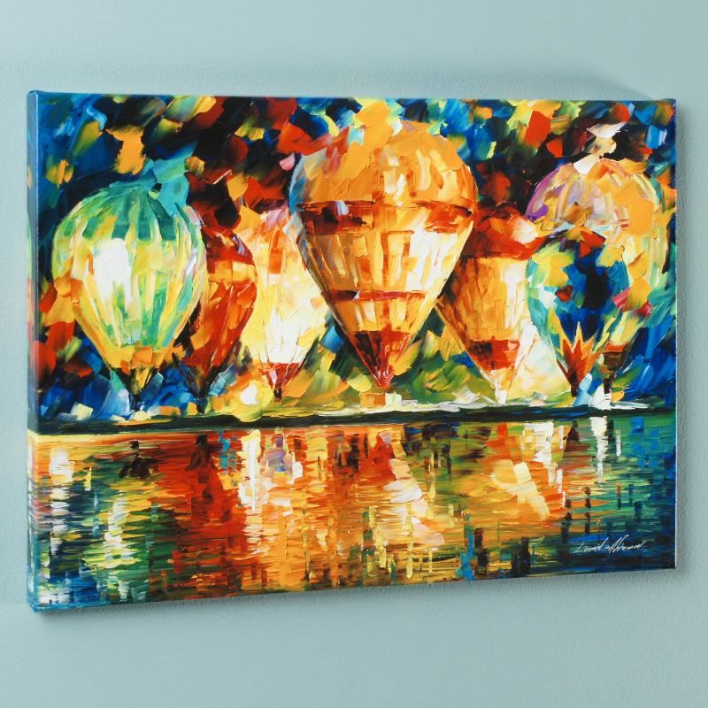Leonid Afremov's masterful use of color and texture make his paintings unique collectibles that are sure to brighten any wall. "Balloon Show" is a limited edition giclee on stretched canvas, numbered in verso and bear Afremov's authorized signature. This piece comes gallery wrapped. Includes Certificate of Authenticity! Measures approx. 24" x 18" (image).