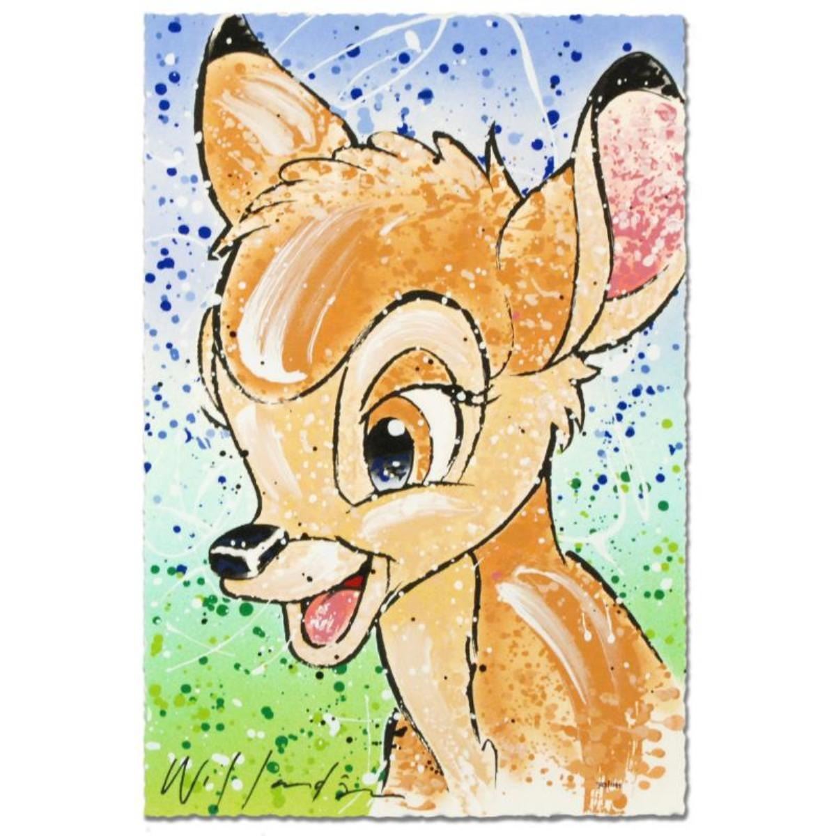 With careful details, loyalty to original Disney creations, and a unique, personal flair, David Willardson's artwork is perfect for the casual fan or the avid collector. "Bambi the Buck Stops Here" is a limited edition serigraph on deckle-edge paper, numbered and hand signed by Willardson. Includes Certificate of Authenticity! Measures approx. 11" x 17" (no border).