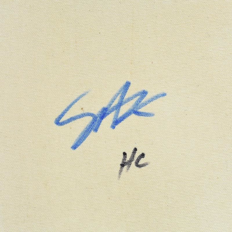 "Barbie" is a hand painted, hand pulled limited edition silkscreen on canvas by Andy Warhol protege, Steve Kaufman (1960-2010). This piece is from an HC edition and hand signed inverso by the artist. As is common with Kaufman's works, this piece may have perceived minor flaws, but is in overall good condition. Measures approx. 36" x 30" (image).
