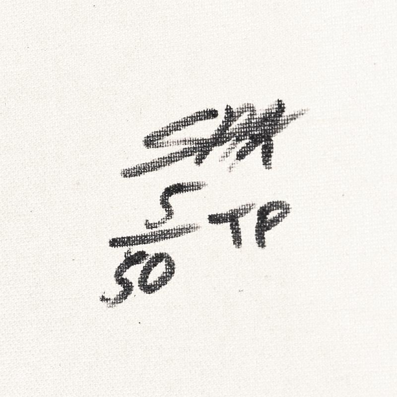 Barbie by Steve Kaufman (1960-2010). Please see photos and description for all available information. "Barbie" is a hand pulled, hand painted limited edition silkscreen on canvas by Andy Warhol protege, Steve Kaufman (1960-2010). This piece is from an HC edition and hand signed inverso by the artist. This piece comes custom framed. Measures approx. 39.5" x 31.5" (frame), 33.5" x 25.5" (image).