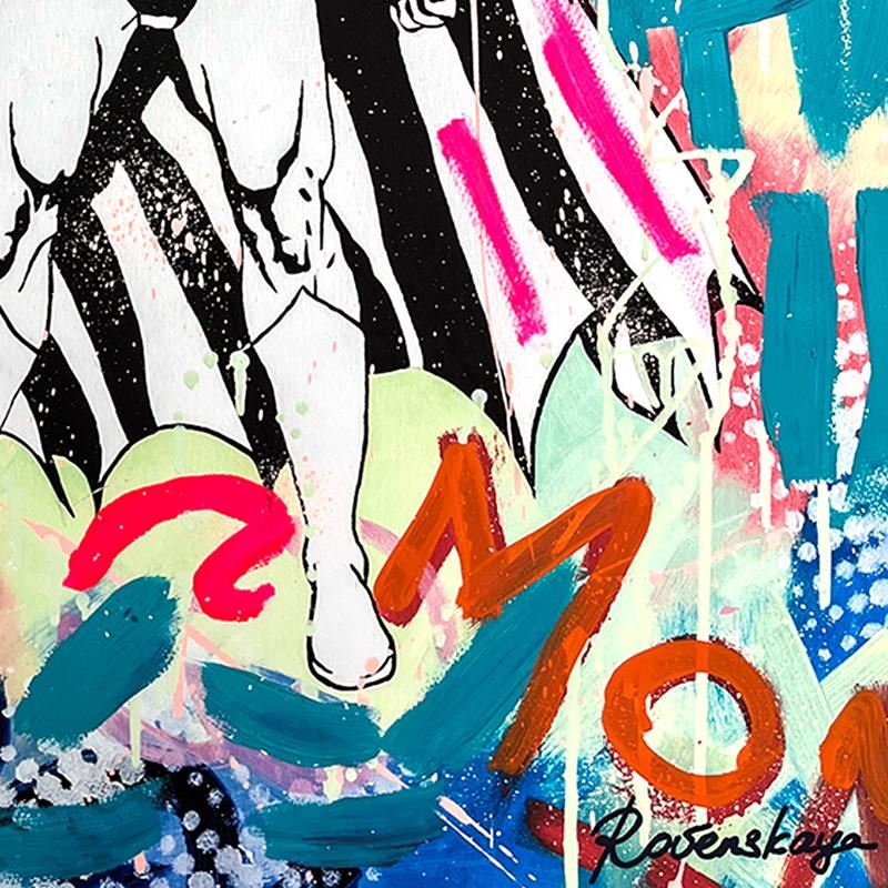"Batman" is a one-of-a-kind mixed media on deckle edge paper by Nastya Rovenskaya; hand signed by the artist. This piece comes custom framed and includes letter of authenticity. Measures approximately 36" x 30" (framed), 30" x 24" (image).