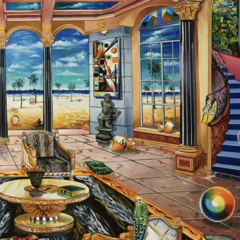 "Beach House" is a limited edition Giclee on Canvas by Alexander Astahov. The piece is numbered, hand signed by the artist, and come with a letter of authenticity. Measures approximately 16" x 20".