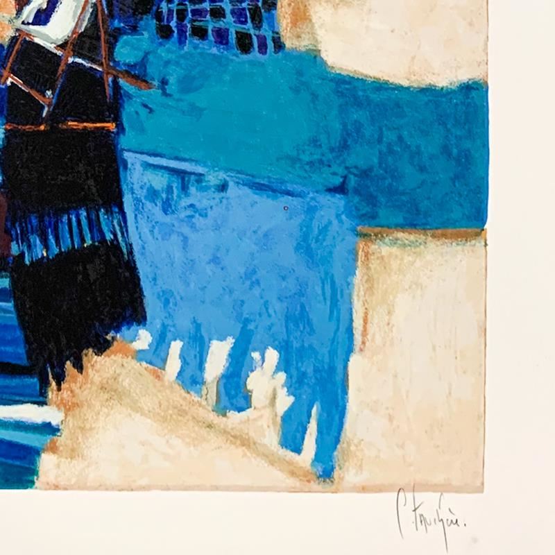Beach Scene is a limited edition serigraph on paper by Claude Fauchere. It is numbered and hand signed and includes a letter of authenticity. Measures approximately 23.5 x 23.5 (image).